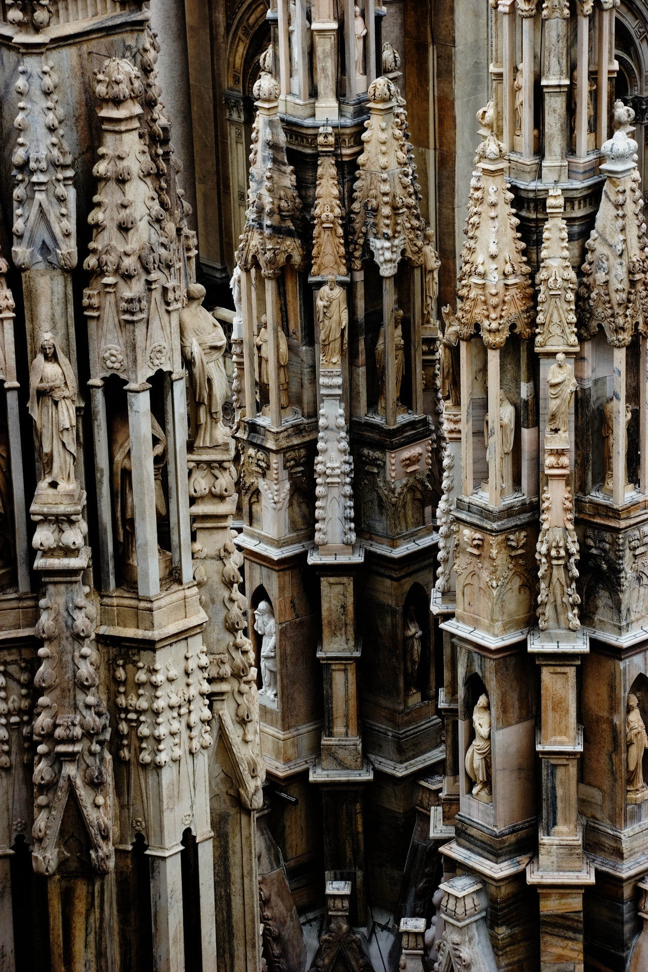 These premises help us to comprehend the exhibited images: a concentric viewing that the author, familiar with architectural studies, shows about unusual aspects of cities the like of Milan, Venice, Urbino. The sharp, close, precise look of a seemingly common phenomenology stresses the sense of Time. Of a time set in a cultural continuum, outcome of a planned slowness which bursts out with energy in the synthesis of an instant. Profound, mysterious images of segments of architecture that compose a mosaic of viewings which, with centripetal force, coerce us to an upwards viewing. Shadows, repetitions, combinations and limitless perspectives accompany the viewer in an approaching path which is almost dizzying. And it’s a concentric path because the author brings us, in a paratactic way, towards his vision of Time.